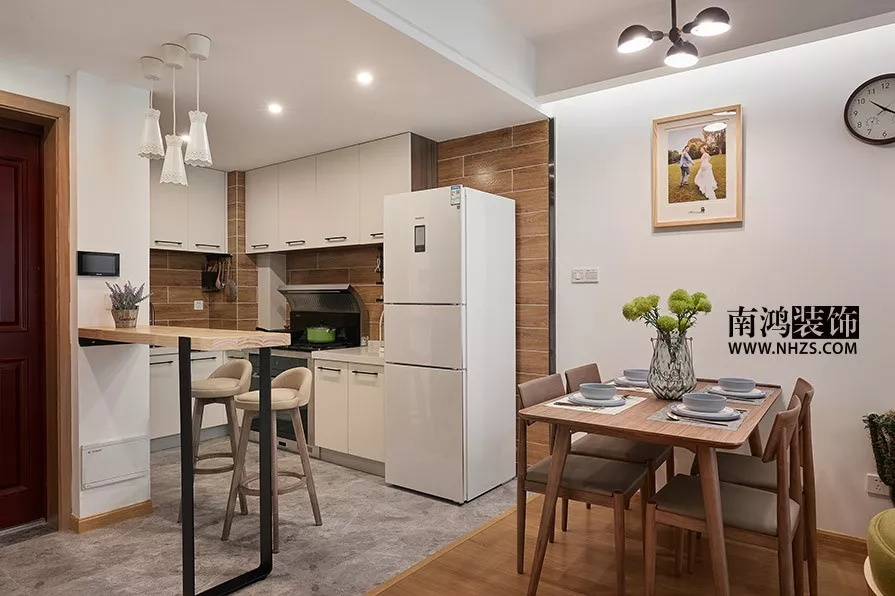 令人頭疼的油煙問題,可以選擇超強吸力的油煙機,再利用玻璃移門、吧臺、島臺或家具隔斷進行遮擋,大大減少開放式廚房帶來的煩惱。