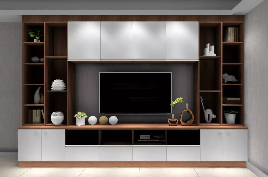 一款簡潔大氣的電視背景墻,為給客廳活動留下更多空間與可能性。