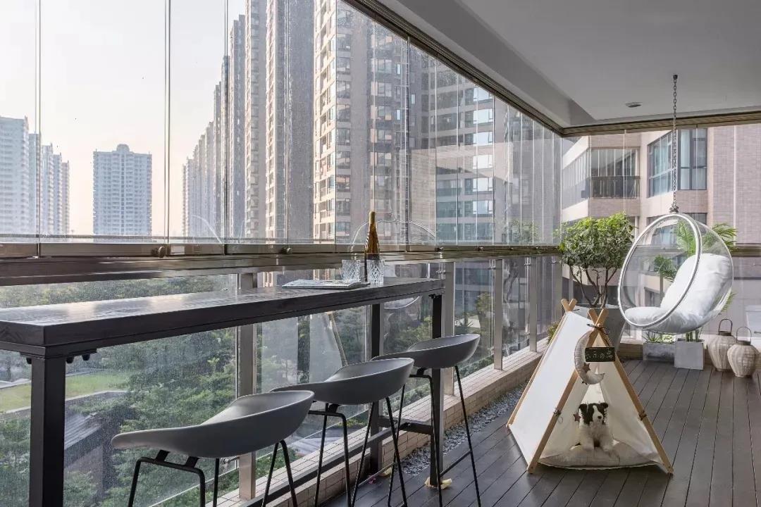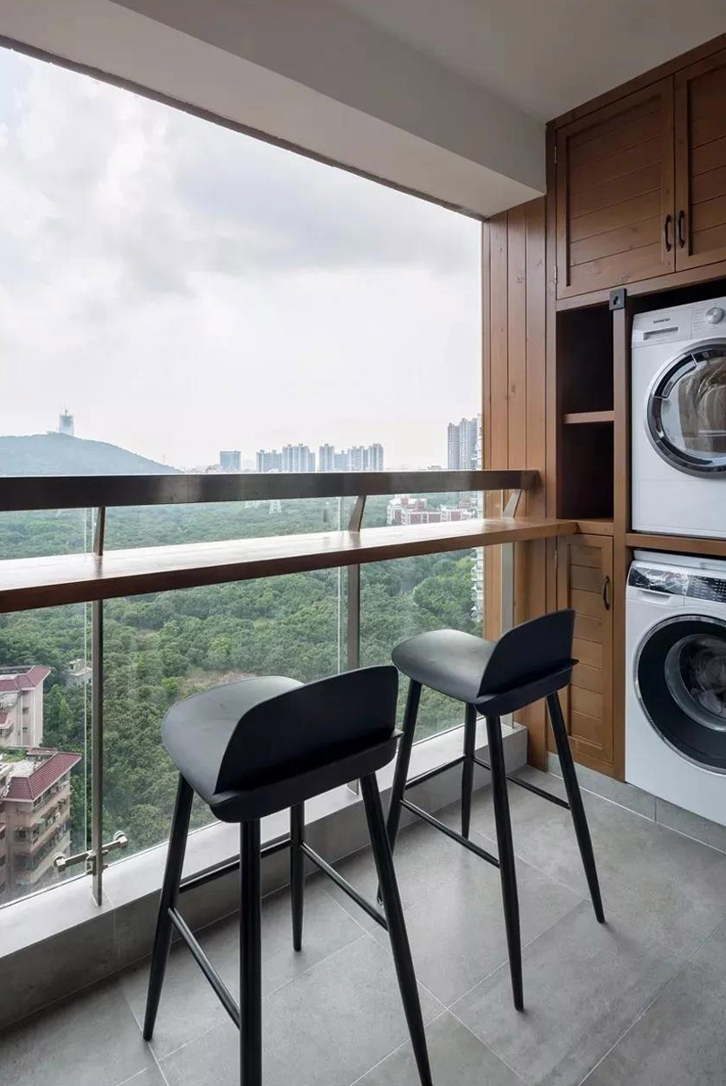 陽臺處在正對室外的位置,視野敞亮,吧臺設(shè)計(jì)在這兒,無論是喝下午茶,看書還是工作,都是不錯的選擇,讓人能暫時忘記生活的茍且,享受一段詩和遠(yuǎn)方。