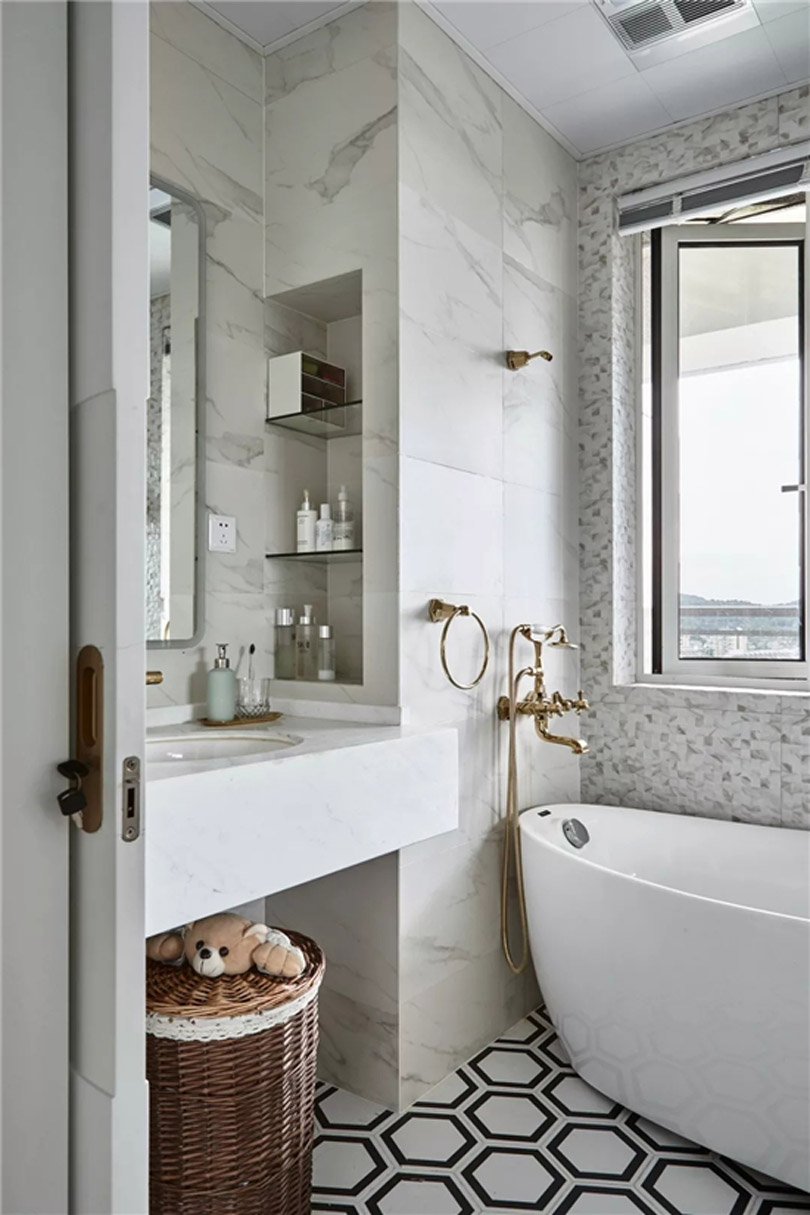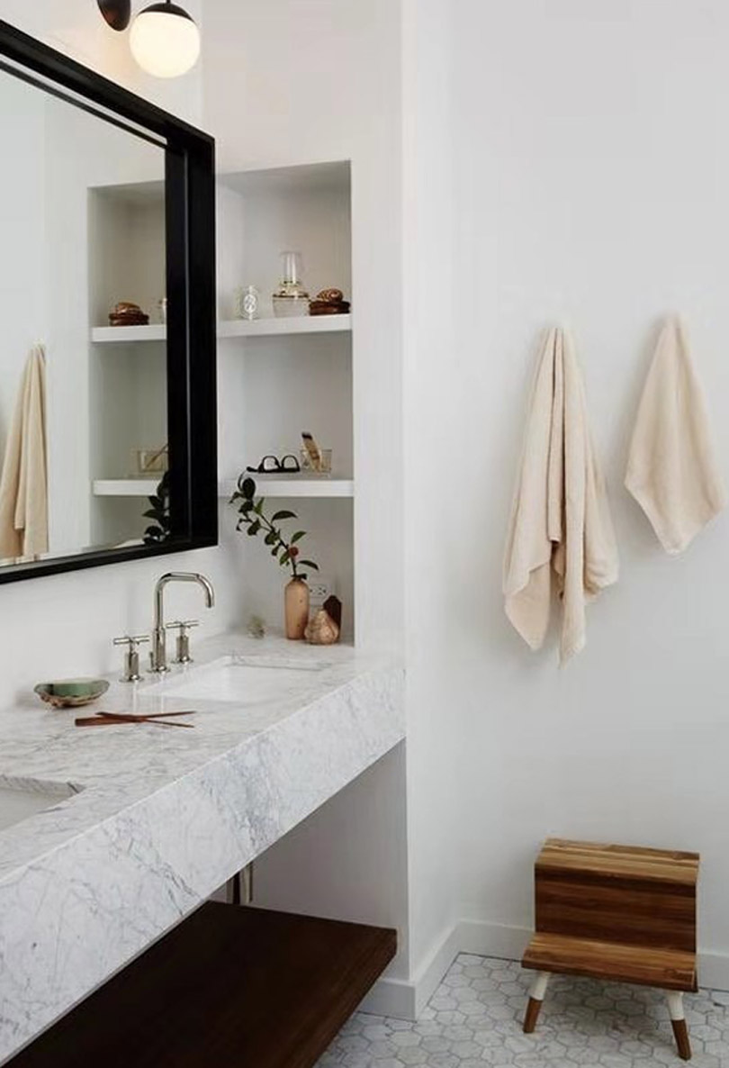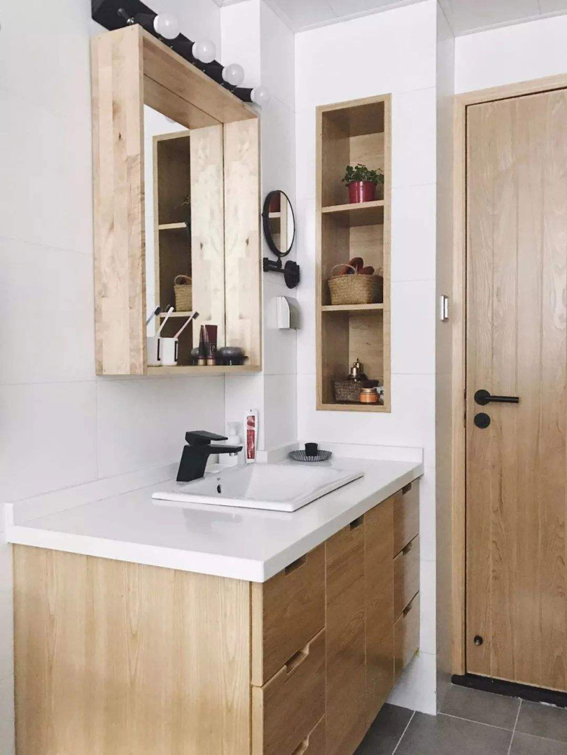 對于衛生間來說,肯定會需要做下水管道,同時也會有新建墻體的出現,此時就可以利用下水管道和新建墻體的位置,巧妙的做出壁龕的設計,這樣既能解決收納空間不足的問題,同時又能讓衛生間變得更加漂亮,空間更加靈動。