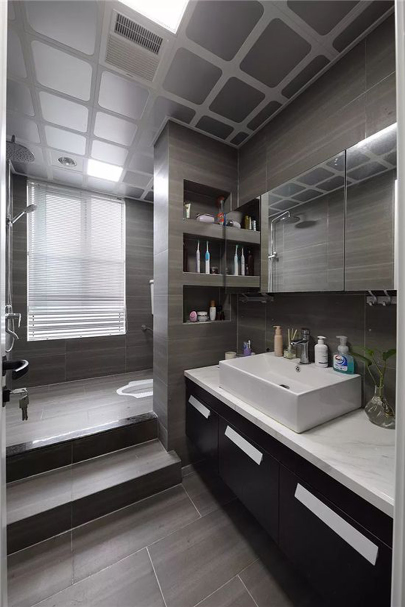 而對于淋浴隔斷的濕區來話,可以直接利用下水管道位置做出壁龕的設計,用于清潔用品的擺放,這樣就解決了淋浴隔斷位置的收納空間不足問題,同時讓淋浴位置更加漂亮,最重要的是在洗澡的時候就能非常方便的取用存放,順手的動作輕松舒適。