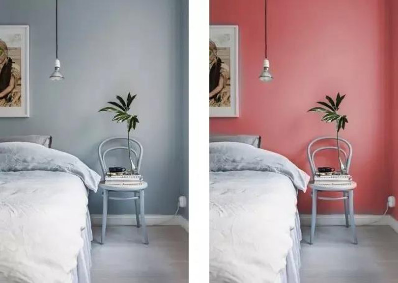 暖色會讓人覺得物體更接近你,視覺距離短,故又稱為之前進色,冷色則相反,屬于后退色,會使視覺距離變長。善用前進色和后退色,能讓我們自如地對戶型進行優化。