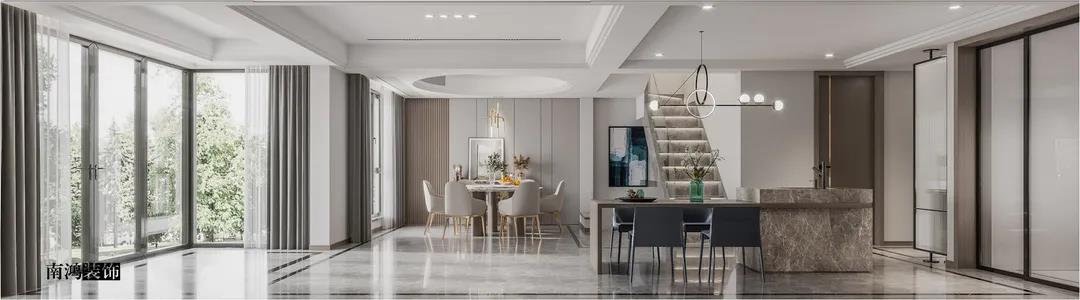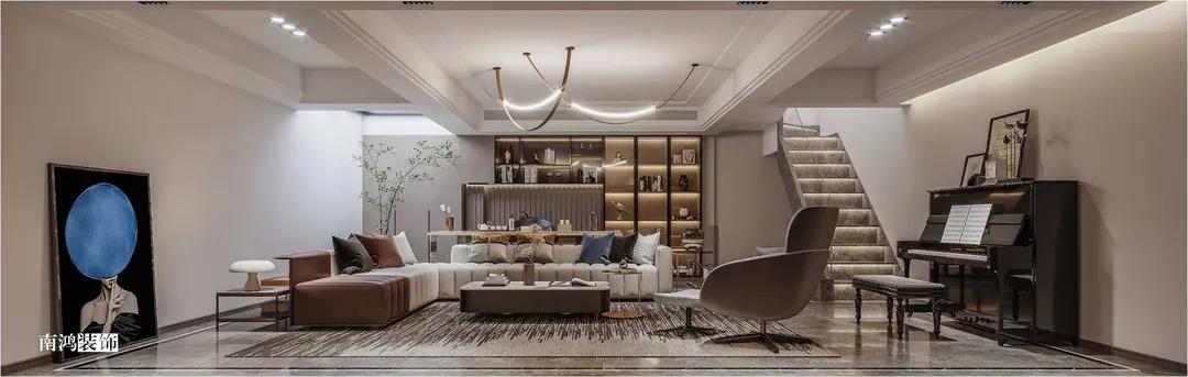 遠洋雁歸里是我們王冬萍老師的一套現代輕奢風格的別墅作品。輕奢風是一種格外優雅的生活基調,也是居者面對喧囂世界時寧靜從容生活態度的一種外現,高貴又有質感。