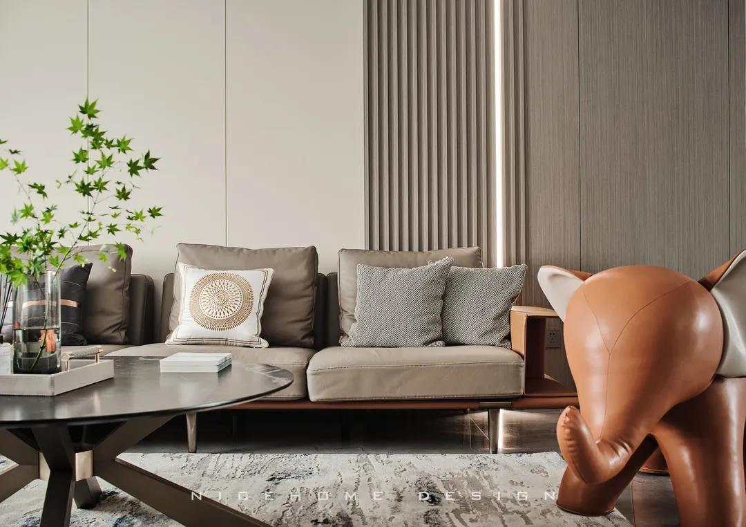 【項目·信息】 地址 / 銀億東岸 戶型 / 四室兩廳 面積 / 200㎡ 風格 / 現代簡約 設計施工 / 浙江南鴻裝飾 1 關于作品 本案以現代簡約為主題,簡潔明快的設計風格為主調,著力體現家的精致與個性,符合現代人的生活品味。 公共區域整體采用暖咖和黑、白色調,溫和親切又帶著現代感的利落灑脫,木格柵增強視覺效果,軟裝上則重點用橙色點綴,烘托溫馨氣氛與活力感受。 2 戶型圖 3 設計落地 玄關 ENTRANCE 玄關端景處一幅格外醒目的復刻畫,大色塊的紅彰顯熱烈、前衛,寓意主人對新生活的愛和熱忱,從今往后,要把每一天都過得“熱氣騰騰”! 客廳 LIVING ROOM 客廳,暖咖色伴隨著溫柔的觀感,讓時光也仿佛靜止于此。沒有特別多收納設計,這里的一切布置均以“美”為第一要義。 電視背景墻的設計,低調中透著華麗。高顏值的大理石磚搭配錯落有致的木格柵,冷暖結合,細節處再點綴光影,簡潔而富有格調。 木質格柵,素來自帶一種東方禪意之美,虛實相生,正是架構意境的獨到方式。木飾面板中藏起通往次臥的房門,視覺高度統一。沙發與茶幾選擇低矮款式,有利于縱向拉伸層高。 餐廳 DINING ROOM 一個優秀的餐廳,光靠視覺,就能成功挑動你的味蕾,再平凡的食物也因此裹上了一層美好滋味。 整排餐邊柜兼做酒柜,玻璃柜內藏酒,儲物柜里存放食品,實用性與美觀度都是一流。窗邊做了小水吧,延續廚房的功能,餐前餐后的手部清潔也更方便。 在這里每天給孩子做一頓愛心早餐,給愛人煮一壺香醇的咖啡,幸福的感覺就這樣漸漸氤氳開來。 廚房 KITCHEN 廚房寬敞明亮,黑色櫥柜較一般櫥柜而言更能凸顯質感,功能設備完善,在吊頂上也做足了功夫,造型感與線條感呼應整體風格。 過道 CORRIDOR 溫潤的木材非常容易給人親近的感覺,無形中就消弭掉空間與居者的距離。過道一側設計儲物區域,層架上適合擺放書籍、小飾品等,空間瞬時生動了起來。 臥室 BEDROOM 主臥延續公共區域的色調,米灰色硬包和木飾面,讓溫暖、淡雅的味道徘徊其中。一盞暖意小吊燈垂下,增強空間的調性,小飄窗則賦予臥室更多的浪漫色彩,和對生活的美好想象。 次臥,皮藝、布料、金屬與線條的融合,交匯出高品質精致感。 粉色是兒童房一直在流行的主題,許多女孩子的夢里或許都有這樣一個如童話般的飄著粉紅泡泡的房間吧~