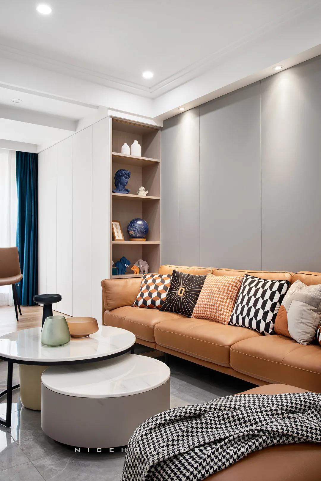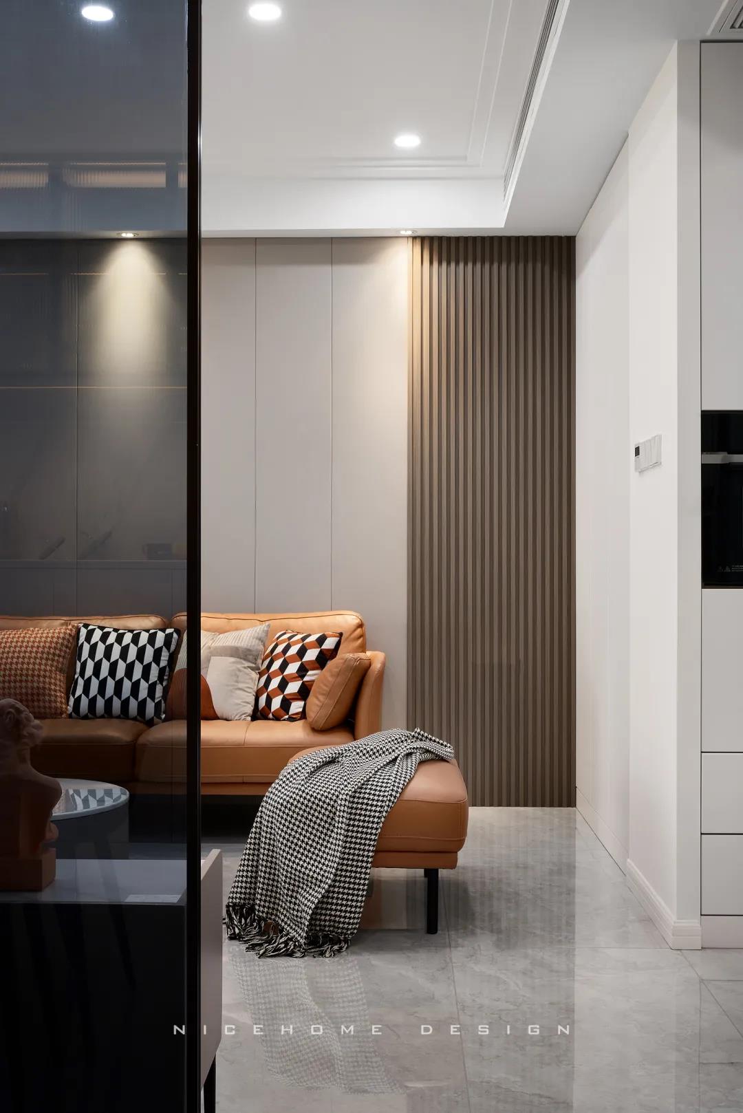 地址:金色時光 戶型:兩室兩廳 面積:89㎡ 風格:現代簡約 設計施工:浙江南鴻裝飾 ■ 關于作品 這是一套單身男業主的居所,由于是一個人居住,所以空間改動上比較靈活,原始三室戶型被改為兩室兩廳,公共區域盡可能打開。這樣一個簡約又隨性的家,一切都是恰到好處~ ■ 關于戶型 經典89方戶型,很方正,但是餐廳位置比較局促,采光不太理想。設計師犧牲了一個房間改造為餐廳,公共區域打開,并植入了比較多的鏡面元素,盡量改善室內采光。 玄 關 走廊型玄關,右側設置一組常規鞋柜,白木基底鋪墊柔和視感,底部留空放日常換的鞋物,中部可以擺一些自己喜愛的小件。 玄關相鄰廚房,為給其釋放一定空間,將冰箱、部分電器柜挪移至了外面。 玄關進客廳的轉角,順勢做了儲物柜,無把手設計十分干凈。過道口嵌一面頂天立地的鏡子,出門可在此檢視穿著,也在無形中放大空間。 客餐廳整體性很強,地面通鋪灰色大理石瓷磚,延續性紋理增加空間的縱深感。陽臺拆除隔門,包進室內打造出一塊休閑區,單層木質地臺界定出儀式感。 沙發背景墻以咖色皮質硬包組合木格柵,搭配上“熱情”的赭色沙發,軟硬材質、冷暖色調的和諧配比,構建簡單溫暖的舒適居住環境。 客餐廳以電視、電視柜與其后的定制鋁框灰玻作為隔斷,多重玻璃元素既保證了兩個空間的獨立性,也不影響自然采光入內,讓原本不算寬敞的公區域看上去視野開闊了許多。 說起獨自宅家的幸福感,自然少不得一個休閑區啦。兩把單椅搭配小巧茶幾,空閑時光看看書、聽聽音樂,享受生活其樂無窮! 白日忙碌,傍晚回到家就獎勵自己一頓豐盛的晚餐吧,把所有煩惱都吃進肚里~ 餐邊柜大臺面可以將咖啡機、面包機等小電器都安置在此,上方吊柜用來擺放杯子、茶具,長虹玻璃的美感十分賞心悅目。再搭配暖黃的燈光,用餐時分變得更加溫馨和甜蜜。 餐廳陽臺同樣包進改造為了茶室,雙層木質地臺抬高,以茶會友,快樂翻倍! 廚房布置為動線更簡短的U字形,灰白配色顯得干凈利落,純平機身的吸油煙機自帶固定隔煙屏,隔煙置物兩不誤,實用與美觀在此處完美融合。 主臥,色彩搭配與家具造型以現代簡約為基礎,低調柔和的色澤展現出舒適又有腔調感的氛圍。 次臥背景墻融入石膏線,讓空間帶上了優雅的情調,床頭背后砌筑出的窄臺面可隨手放置一些小物件,增強實用性。 對于戶型中唯一一個衛生間設計,設計師在遵從空間格局的基礎上進行了簡約化處理,實現功能性與審美性的統一。