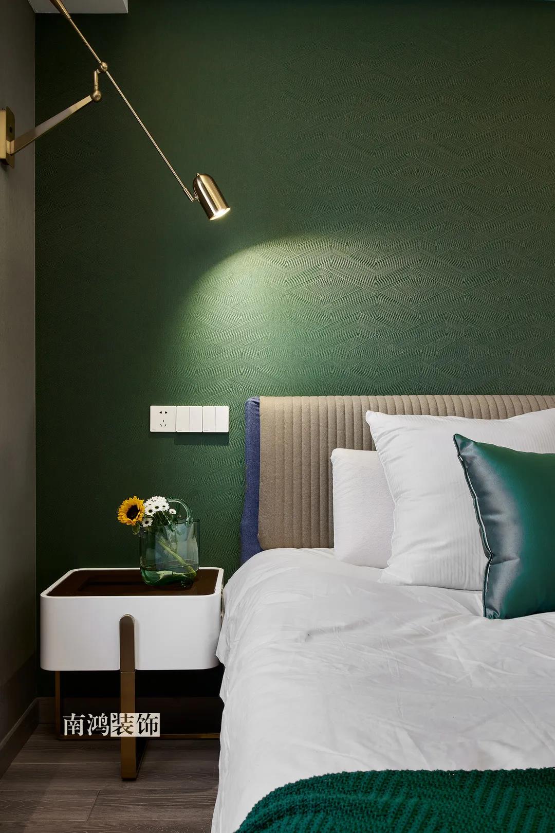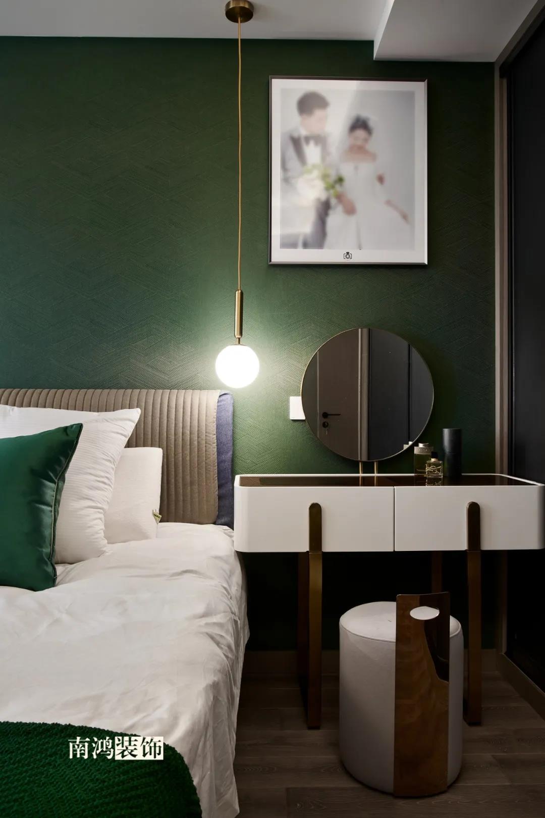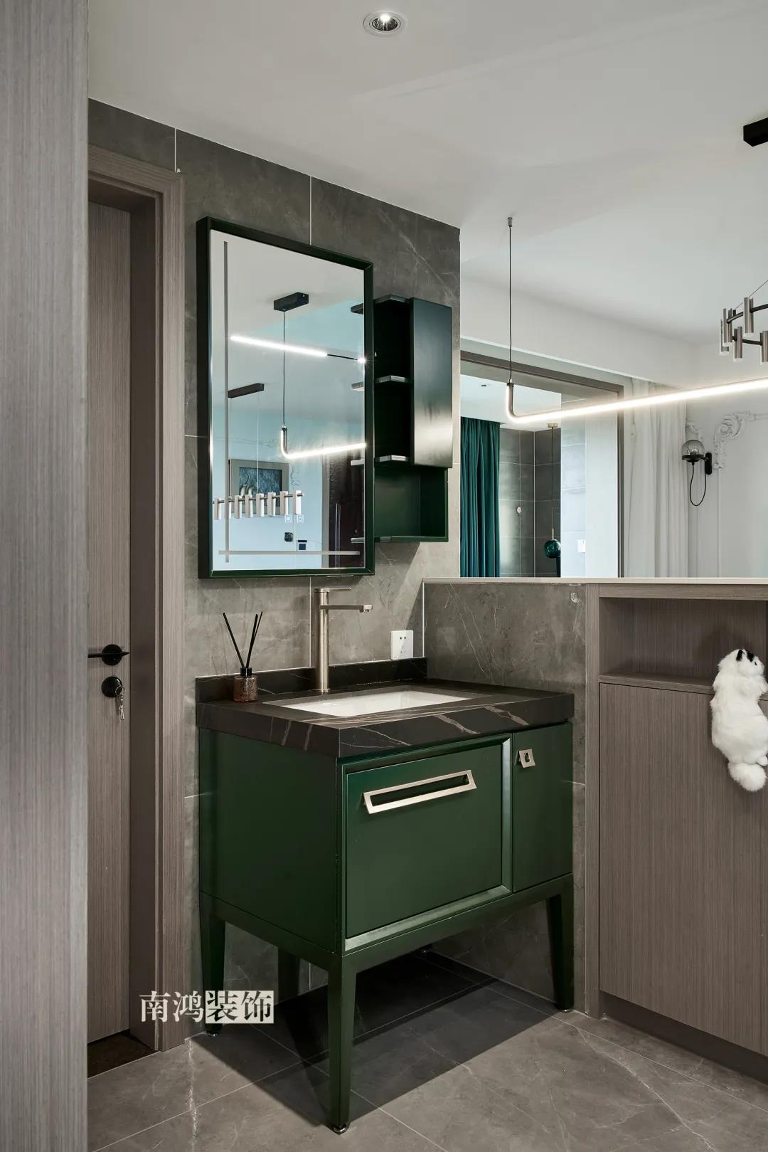 【項目·信息】 地址 / 世貿西西湖 戶型 / 三室兩廳 面積 / 91㎡ 風格 / 現代法式 設計施工 / 浙江南鴻裝飾 本案為91㎡現代法式風格作品。現代法式摒棄傳統法式繁復、冗雜的裝飾造型與甜膩的色澤,通過淡雅的色調,簡潔的幾何線條和典雅時尚的陳設軟裝,來打造更符合現代人喜好的生活空間。 業主夫妻倆,一位是性格沉悶的工程男,一位是熱情開朗的設計女,彼此志趣相投,性格互補,優雅的法式,給這個甜蜜小家庭增添了更多美妙情趣~ ▲原始結構圖 ▲平面設計圖 ①衛生間做干濕分離。 ②兒童房的門洞方向更改,完整電視背景墻效果。 ③主臥和次臥交換位置,次臥陽臺打通。 ④縮小主衛面積,墻體后退得以嵌入一個大衣柜。 入戶門進來即見餐廳。戶型面積不大,公區域都盡量打開讓視野更開闊。 硬裝整體簡潔,墻面可見石膏線花紋裝飾,借此強化一定法式空間意象。餐桌椅、吊燈的造型選擇也都偏現代,空間中奢與簡的分寸把握得恰到好處。 綠色作為本案的點綴色,可以說貫穿了幾乎各個分區之中,鮮活的生命力讓人過目難忘。 客餐廳一體式設計是小戶型的常見選擇,也更符合現代人的生活習慣。灰白主色保持整體低調,局部墻面以飽和度高的綠色乳膠漆涂刷,空間被提亮不少。 客廳采光良好,沙發背景墻連接干區的位置做一個小的半高柜,提升空間利用率。軟裝家具布置則用簡潔的設計手法將法式的古典優雅和現代的簡約時尚相結合,使得空間既有休閑感受,又不乏藝術氣息。 經過設計調整,電視背景墻的效果更加完整,深淺色調做左右兩塊分界,以石膏線裝飾則更顯精致。 拱形門洞也被應用在這里,作為歷史悠遠的一種經典建筑元素,本身就很契合各種帶古典意味的家居風格。 廚房以長虹玻璃門隔絕油煙,保證內部的私密性,也實現了采光的通透感。冰箱被移至過道,釋放內部更多空間。 廚房采用U型布局,動線流暢,烹飪區、操作臺和洗滌區都有各自獨立的空間,互不打擾。 主臥,青草綠墻布做背景裝飾,留白保持簡約調性,一幅婚紗照訴說著夫妻二人簡簡單單、明明白白的甜蜜愛情故事。 光源除主燈外,床頭兩側各有布置,一邊長臂燈一邊吊燈的不對稱設計,讓臥室空間顯得更加有趣,金屬材質呈現輕奢美感。 長輩房的背景、色彩選擇需要貼合老人的喜好,選用橙色主色,帶來如陽光般的燦爛、溫暖感受。 夫妻二人目前還沒有孩子,這個房間預備做以后的兒童房,布置相對簡單,方便將來調整。 衛生間將干濕區域分離,洗漱臺盆柜、壁柜與旁邊打造出的半高柜體可將瓶瓶罐罐都收入其中,保證視覺上的清爽。